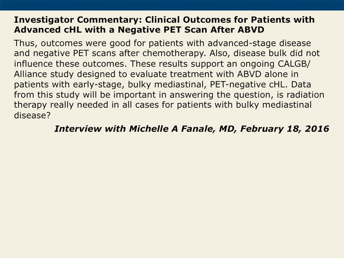 Clinical Outcomes for Patients with Advanced Classical HL with a Negative PET Scan after ABVD