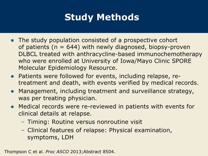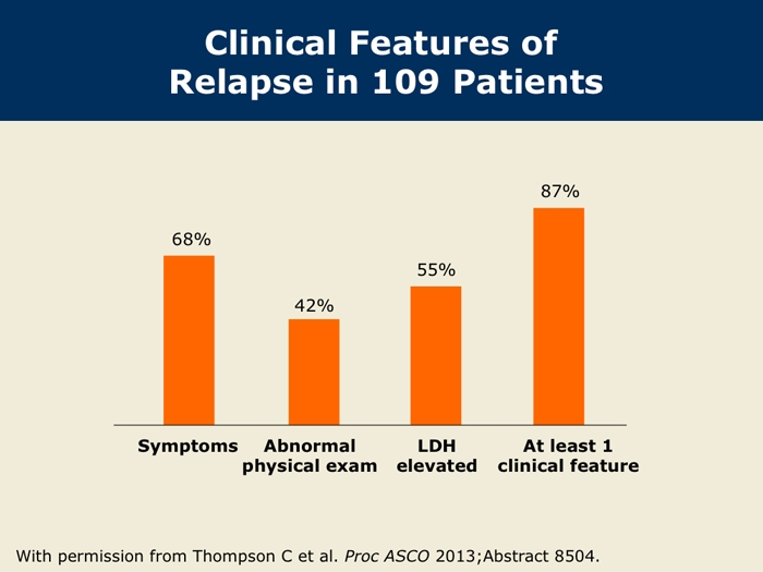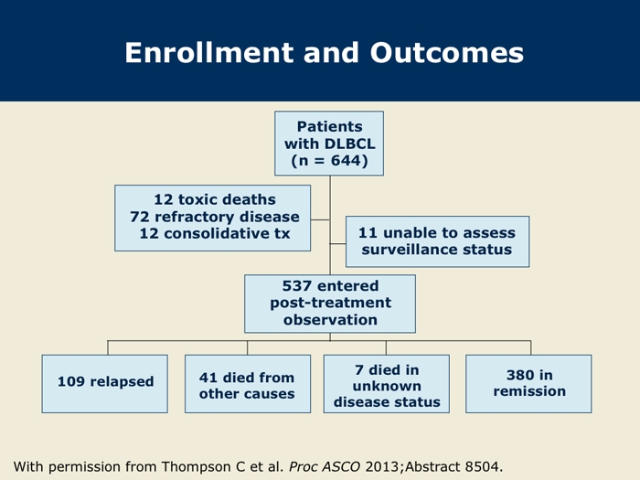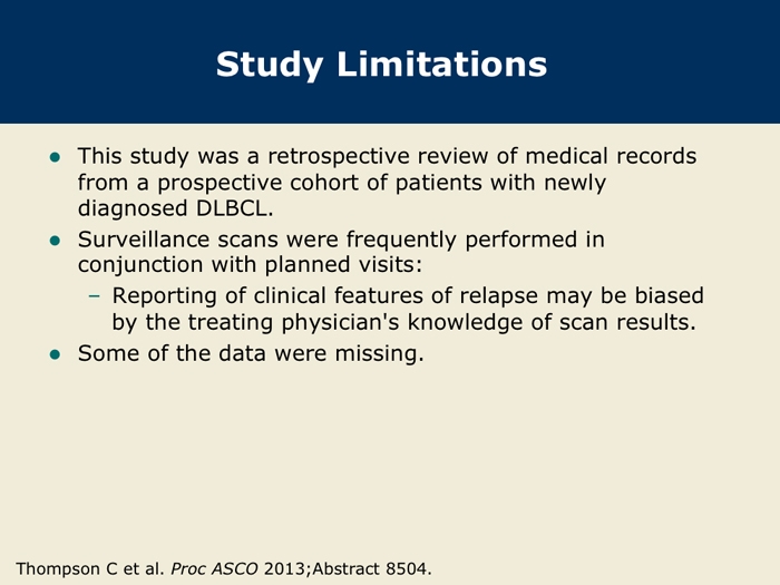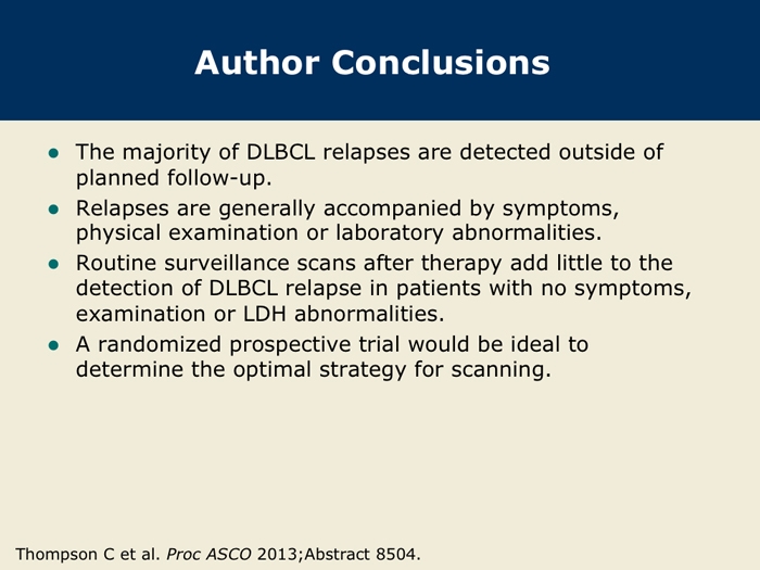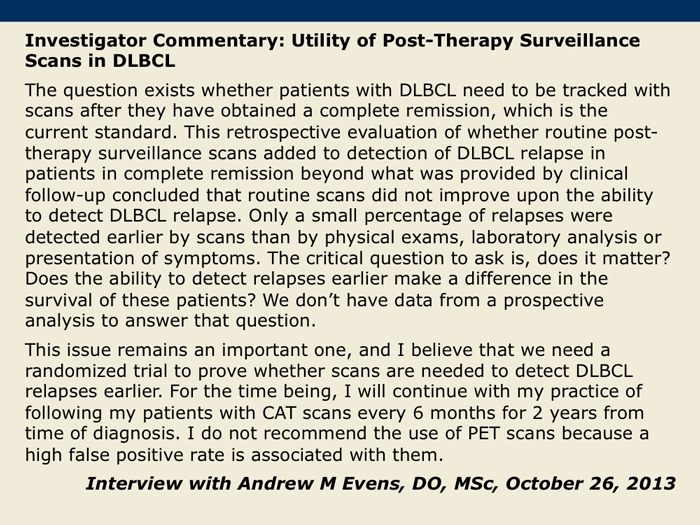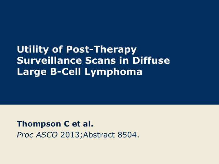 Thompson CA et al. Utility of post-therapy surveillance scans in DLBCL. Proc ASCO 2013; Abstract 8504.