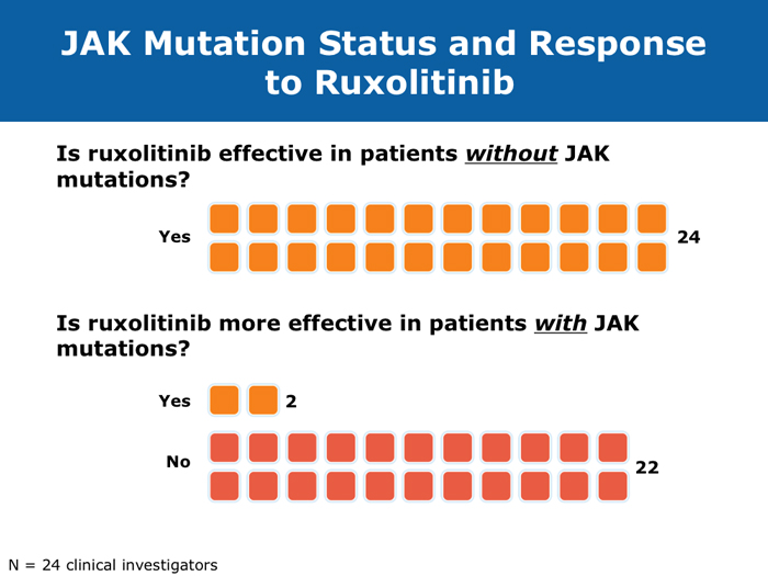 JAK2 seems to be a central clearinghouse in both groups of patients, and that’s what the drugs inhibit and why we see a benefit. It remains as speculation whether a drug that targeted only the native JAK2 would be more active or less active. But the fact that patients respond with or without JAK2 mutations fits well with what we know about native JAK2 and the fact that it is overly active in both groups of patients.