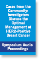 Cases from the Community: Investigators Discuss the Optimal Management of HER2-Positive Breast Cancer (Symposium Audio Proceedings) Featuring perspectives from Prof Giuseppe Curigliano, Prof Nadia Harbeck, Dr Ian E Krop, Dr Nancy U Lin and Dr Joyce O’Shaughnessy. Published January 2026. |